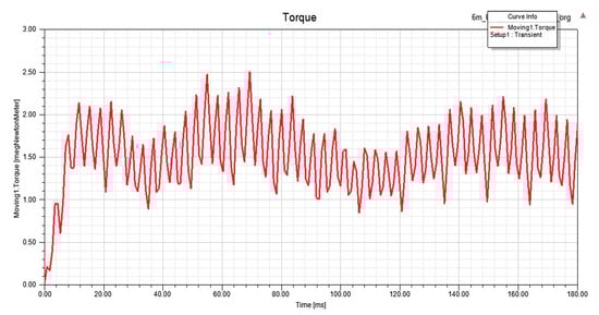 The next step in the analysis is to transform a BLDC into a flat two-dimensional model for finite element magnetic field analysis. This model is an exact copy of the CPSM. It has the same anchor and magnetic fluxes. Analysis of the characteristics is carried out using a simulator of the electronic circuit (Ansys Citrix Circuit). The results of the analysis of this stage are shown in Figure 6.