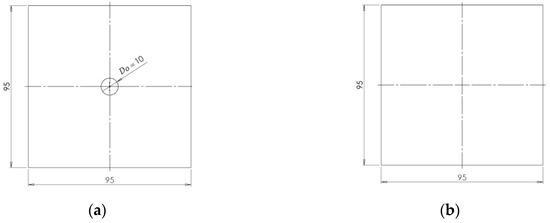 Specimen dimensions in [mm] adopted for (a) hole expansion test (HET) [4] and (b) Erichsen Cupping Test (ECT) [9].
