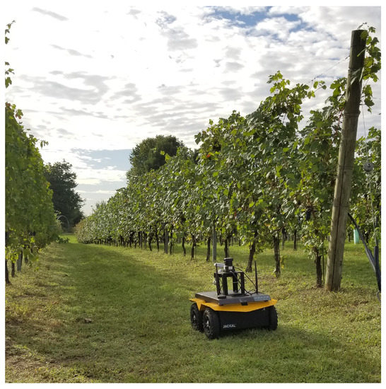 As far as autonomous navigation is concerned, classic autonomous systems capable of navigating a vineyard adopt high-precision RTK-GPS [25,26,27,28] or by the use of laser scanners combined with GPS [29,30]. However, the lack of GPS availability due to environmental conditions such as large canopies, the need for prior surveying of the area, and unreliable connectivity in certain scenarios make GPS-free approaches desirable [31]. On the other hand, more modern and recent approaches employ different types of sensors usually combined with each other [19]. For example, Zaidner et al. introduced a data fusion algorithm for navigation, which optimally fused the localization data from various sensors; GPS, inertial navigation system (INS), visual odometry (VO) and wheel odometry are fused in order to estimate the state and localization of the mobile platform [32]. However, as highlighted by the authors, there is a trade-off between cost and accuracy, and the data fusion algorithm could fail if each sensor highly differs from each other.