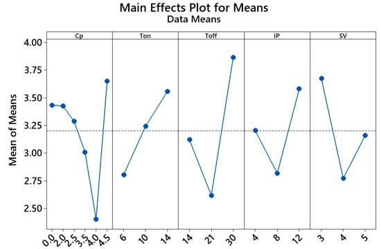 | Run | Cp | Ton | Toff | IP | SV | Ra [µm] | ||||