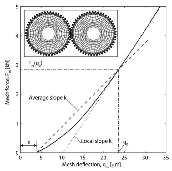 where and is the tooth mesh load. In this expression the loaded from Equation (5) can be recognized and is the . The local slope approach contemplates the following instead: