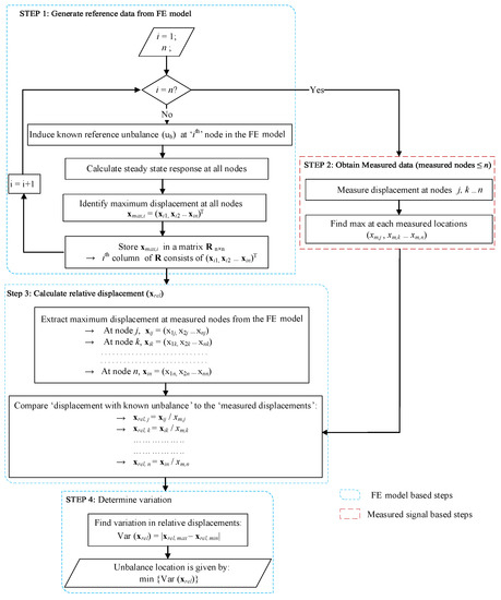Now consider a test rotor of n nodes with an unbalance whose location and magnitude are unknown. The process flow in Figure 1 displays the different steps involved in identifying the unbalance location.