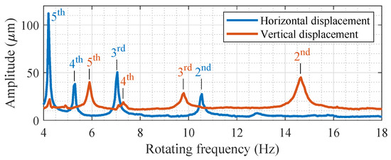 Response measurement of the test rotor. The results are separated to horizontal and vertical components.