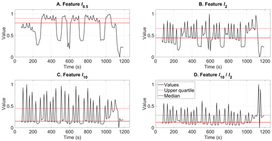 20], other features derived from them, and percentiles in short time windows are used. Such features have proven useful in previous applications in the monitoring of machine vibration [