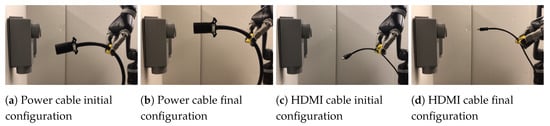 Cables are linear flexible objects that are common in industrial, domestic, and nuclear environments. The 2015 DARPA Robotics Challenge (DRC) Finals was aimed at advancing the capabilities of human-robot teams in responding to natural and man-made disasters. The Plug Task in this challenge required the robot to pull a power cable out of a socket and plug it into another []. Among six teams that completed the task, Team WPI-CMU had the fastest completion time with 5 min and 7 s []. Their approach used teleoperation by the human operator to grasp the plug and to complete the task []. The other five teams also did not automate this task, and they took longer times to perform the task.