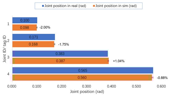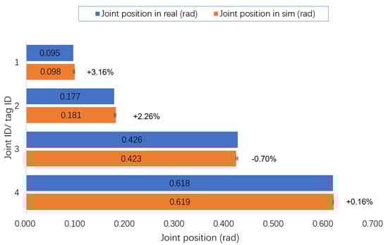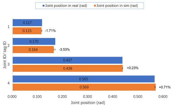 Comparison of the joint positions in simulation and real world (a 50 g weight added to the tip).