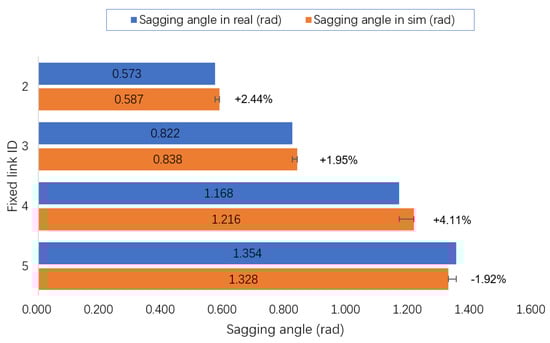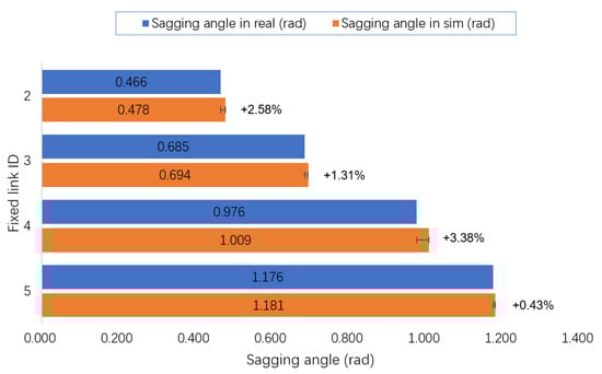 Figure 29 shows the comparison result by fixing different links on the cable to the world. From the Figure 29, we conclude that the difference of the sagging angle between the simulation model and real cable is within a reasonable range (<0.04 rad), and the largest percent error is 3.38%.