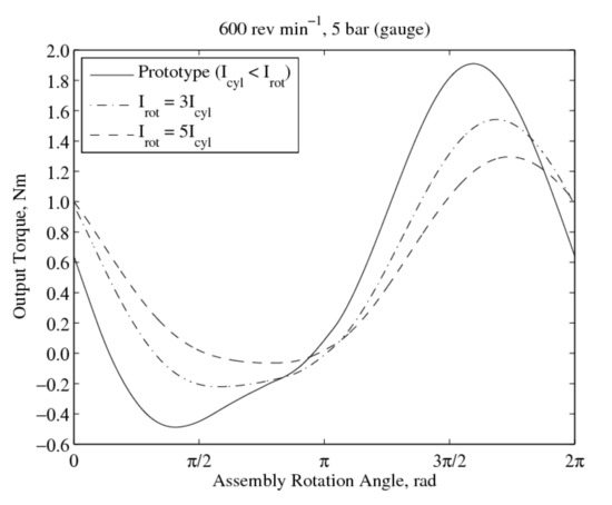 - Although, high cylinder inertia causes a negative output in the first half of the cycle, the momentum of the cylinder contributes to the peak output torque in the second half of the cycle.