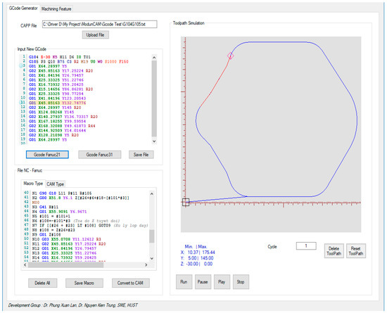 - The G-code generation module can be used as a new G-code cycle for manual programming, can be combined with CAD–CAPP modules to form a completed CAD–CAPP–CNC integration system, or can be used in a CNC machine. In future research, we will focus on G-code generation for 3D complex curves and machining accuracy in comparison with a CAM output program.