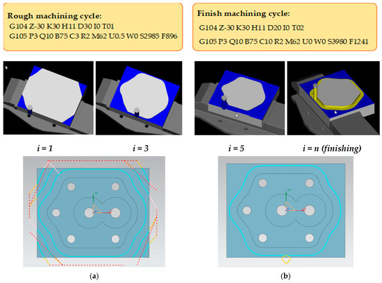 Toolpaths for (a) rough, and (b) finish machining.