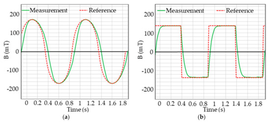 The change curve of magnetic flux density with time. (a) Sin-AC; (b) S-AC.