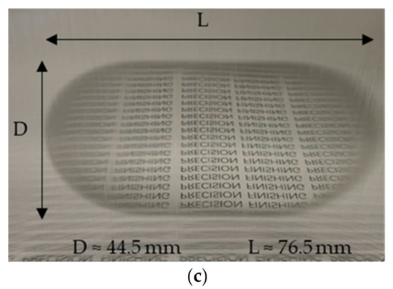 Photos of the workpieces. (a) Magnetic particles: 75 μm; (b) Magnetic particles: 149 μm; (c) Magnetic particles: 330 μm.