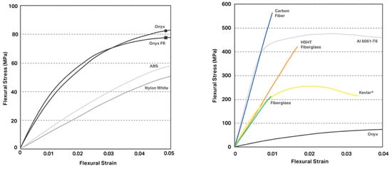 In the case of a composite with carbon fiber, the manufacturer declares a 10-fold increase in bending strength compared to pure nylon, and according to tests carried out by it, greater strength than aluminum 6061-T6. The data is based on the manufacturer’s static bend tests in accordance with ASTM D790. Samples containing no reinforcement did not break. The results of the manufacturer’s tests are shown in