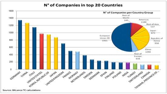 Figure 4 shows the number of marine supplies companies, in the 20 most important countries in the marine industry.