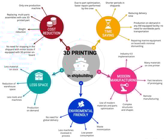 63]. Many people, even with technical backgrounds, have the vision of 3D printing as a way to get a fully functional product straight from the 3D printer. People familiar with these manufacturing techniques are aware of the limitations and necessity of printed parts’ post-processing, which is often more laborious than printing itself. The technical and engineering skills required for successful implementation of 3D printing range from modern design processes and knowledge of new material processing to data management from testing and process monitoring. In order for 3D printing to revolutionize production in the maritime industry, a well-trained and capable staff will be required [
