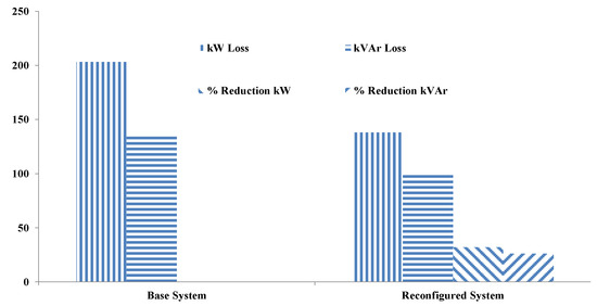 Losses of base and reconfigured distribution system.