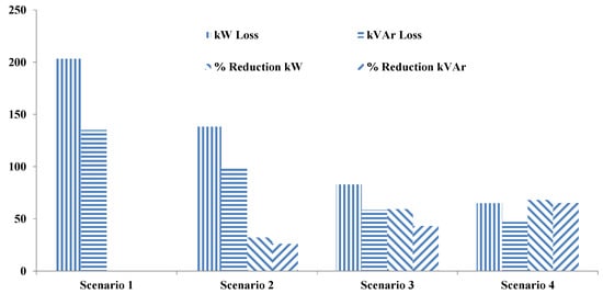 Active and reactive power losses of the network with different scenarios.