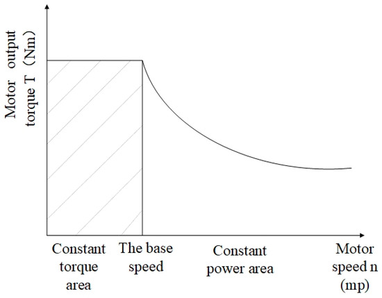In a motor control system, when the motor speed exceeds the base speed, the motor system cannot maintain the output of the peak torque. Therefore, the torque must be reduced in the system and the constant power output is required. The relationship between speed and torque of the motor system is shown in Figure 3.