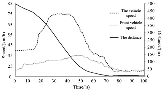 Figure 16. The speed of and distance between the front and rear vehicles during the experiment.