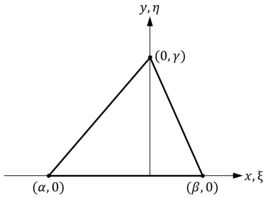 where is the shear modulus of the material, E is the Young’s modulus and is the Poisson coefficient and since the values of for the entire triangulation need to be obtained three times, considering as the apex a different vertex of each triangle. Once this is done, the influence coefficient relating node i to node j is found by