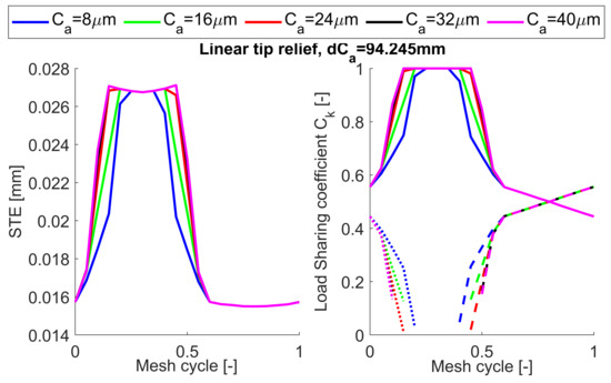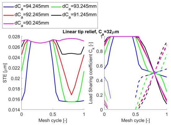 Effect of linear tip relief length of modification on the STE and load sharing.