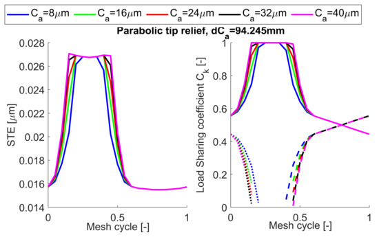 Effect of parabolic tip relief amount of material removed on the STE and load sharing.