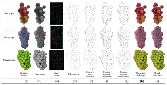 | Hough transform detection circle | Red grape | 84.71 | 76.46 | 86.91 | 7.389 |