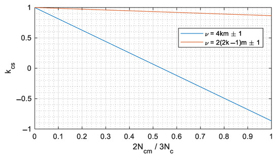 where Nc is the mean number of winding turns defined as Nc = (Ncc+2Ncm)/3 and kcsν is a factor respecting the number of turns of coils and shift of winding sets equal to