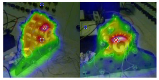 The temperature of the permanent magnets and especially the temperature of the stator core and the winding is measured during the test. The thermographic camera picture is presented in Figure 10. This method of temperature measurement is chosen for a fast temperature check and comparison of the thermal dissipation of the machine with mathematical models.