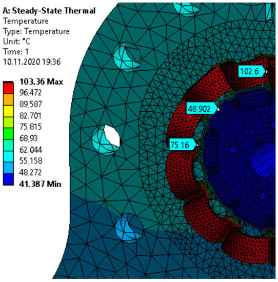 In the solved thermal model is on the machine surface and the rotor face set the heat transfer coefficient to αoutside = 9 Wm−2K−1. The other parameters are presented in Table 1. The ANSYS Workbench is used for the calculation.