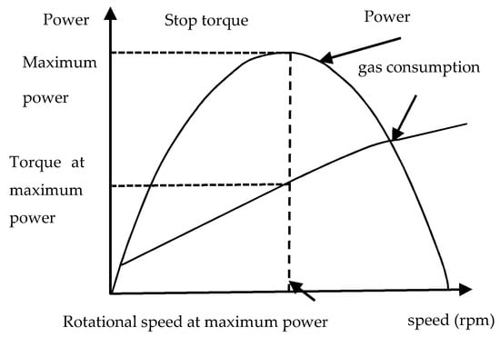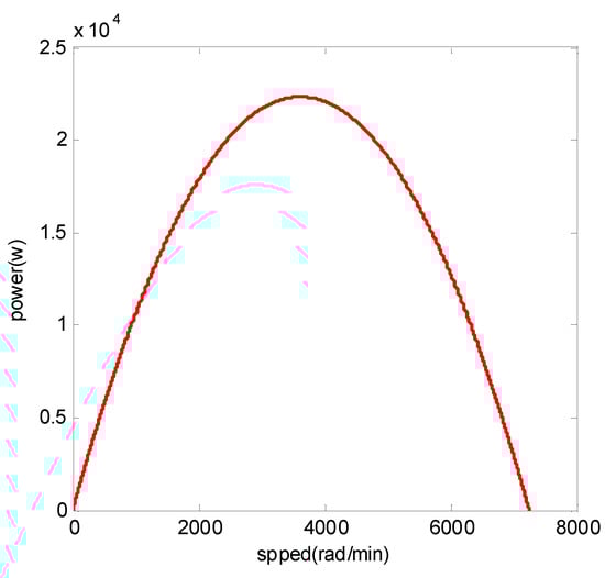 Figure 1. Here, the power output by the pneumatic motor passes through the origin parabola. When the loading torque is too large, the speed of the pneumatic motor of the bolt drill reaches the minimum of zero, and then, the power output by the motor is zero. When the loading moment is zero, the power output by the pneumatic motor is also zero. At this point, the speed output by the pneumatic motor is maximum.