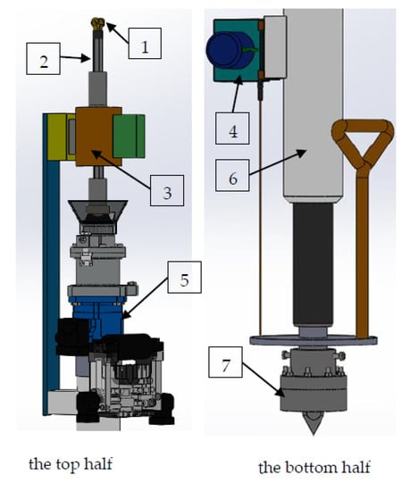 Figure 4, we built a physical unconfined compressive-strength detector for roadway rock. The actual application method of vertical drilling for a coal mine roadway with a pneumatic bolt machine is shown in