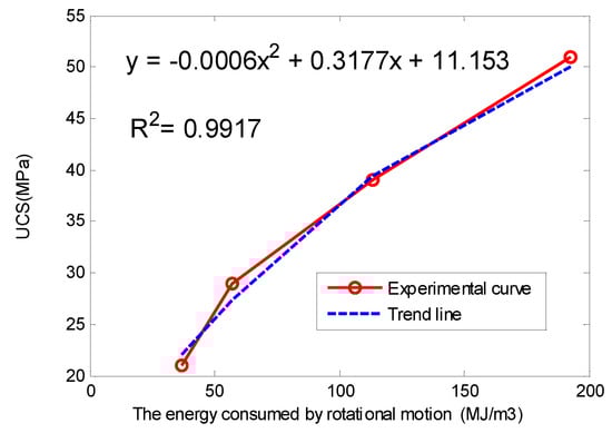 Table 4. From this table, one can clearly distinguish the rocks with higher strength from the rocks with lower strength. The relationship between UCS (Y) and energy (X) in