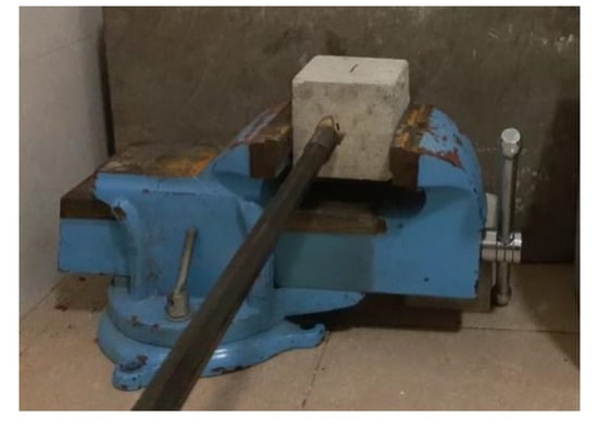 Figure 7. A test block of 50 × 50 × 50 mm was simultaneously prepared. Each test block was consistent with the drilling test material. Then, a uniaxial compression test was carried out using a mechanical rock-servo testing machine. The results are shown in