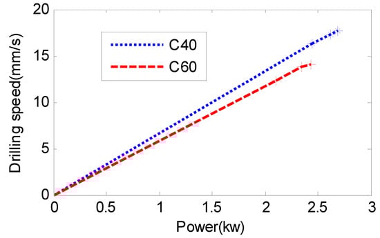 We observed that, when the motor load torque has a certain value, the output speed of the motor is half of its maximum speed, and the motor output power is the largest. Therefore, the power output of the pneumatic motor can be maximized by using the power characteristic curve of the pneumatic motor. According to Formula (10), the drilling speed output by the bolt drilling machine is also maximum.