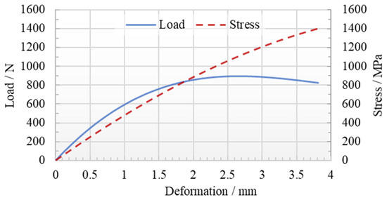 The characteristic curve of the slotted disc spring is shown in Figure 4. The load is 341.887 N and 894.33 N when the compression distance is 0.5 mm and 3 mm, respectively. The material of the slotted disc spring is thermally treated 60Si2MnA spring steel. The allowable stress is between 1400 MPa and 1600 Mpa, which means the designed slotted disc spring meets the requirements of allowable stress. The picture of the finally obtained slotted disc spring is shown in Figure 5.