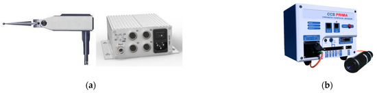 The sensors used in the experiment. (a) TESA GT31 displacement sensor; (b) STIL spectral confocal sensor.