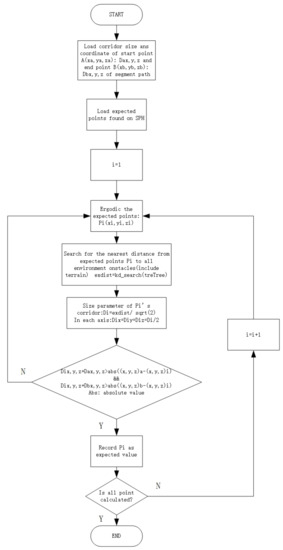 Finding the free point set on and picking out one to insert into the path can be generalized to a KNN problem—a fixed-radius near neighbors problem: picking one lowest-cost spot from the set and inserting it into the original succession of path spots. If there is no solution on , the circle must be extended again such that . In Section 3.2, we present our method to finding a solution.