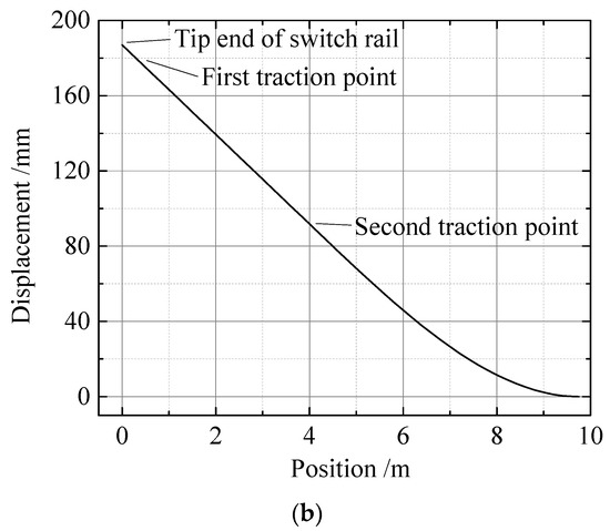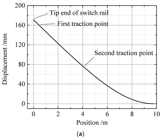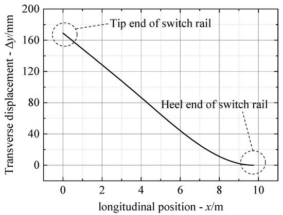 Through the above calculation, the transverse displacement distribution curve of the switch rail separated from the stock rail can be obtained (