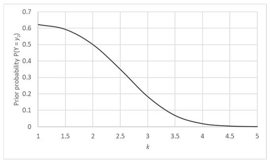 This means that, based on the probability ratio for a given observation X, the prior probability for Y to be in state y2 that results in a sufficient posterior probability is bounded by Equation (6), as illustrated in Figure 1.