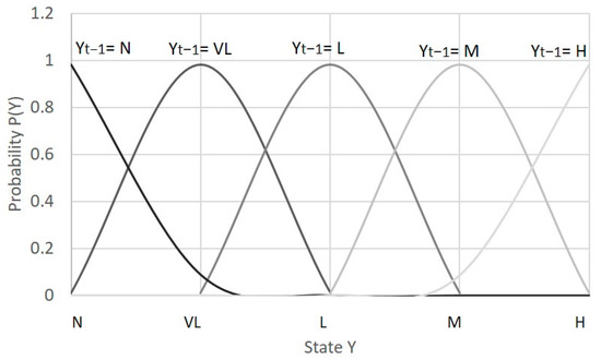 For the Bayes theorem, the posterior probability of each state can be expressed according to Equations (2) and (3).