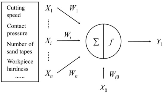 Since there are three input parameters, contact pressure, grinding speed, and material (characterized by elastic modulus), the number of nodes in the input layer n = 3, the wear rate of abrasive belt is the output parameter, so the number of nodes in the output layer is m = 1.