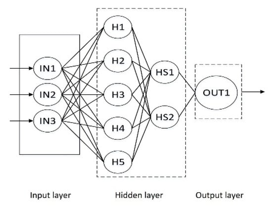 The topology of the neural network is shown in Figure 2, which is divided into output layer, hidden layer, and input layer. The non-linear mapping method between the three layers is used to approximate the result value with the set accuracy. For the set root mean square error value, the back propagation algorithm is adopted, therefore the samples are required for training, followed by input forward transmission, forming a complete closed-loop feedback system, and constantly improving the accuracy of the weight of each neuron to meet the accuracy requirements [].