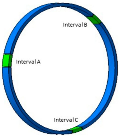 In order to reduce the influence of random errors, ensure the consistency and integrity of the measurement, and improve the credibility of the data, it is required to calibrate three intervals A, B, and C at equal intervals for the entire belt, as shown in Figure 7 and Figure 8. For each measurement of wear, three points are taken in this area. For example, points taken in area A are recorded as NA1, NA2, and NA3, and the three sets of interval data with better stability are taken as the actual measured value of wear Δ.