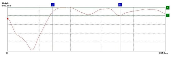 As shown in Figure 10, there will be huge fluctuations on the height curve at the sampling front end. This is because the VHK-900 Keneyce is a manually adjusted microscrew. It is difficult to achieve a uniform speed when the initial rotation speed is applied, so huge fluctuations will occur. Data removal processing is required to remove invalid information. When taking HorLine and VertLine, points should be taken at the peak and valley stages of smooth changes to calculate the amount of change in wear and thus improve the accuracy of wear measurement.
