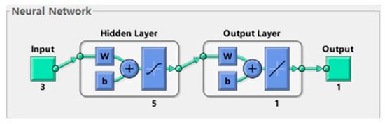 The number of hidden layers is related to the processing capacity of the network, which means more complex grid training and extended solution time. When there are too many hidden layer neurons, the network can learn well and achieve the expected network accuracy, but the generalization ability of the network will become worse due to the over fitting of the network to the weights. When the number of neurons is too small, the network performance cannot be brought into full play and it is difficult to complete sample learning []. The number of hidden layer neurons in the network is directly related to the complexity of the actual problem, the number of neurons in the input and output layers, and the setting of expected errors. At present, there is still a lack of a general calculation method, mainly referring to empirical formulas which are as follows []:
