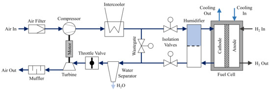 - Hoeflinger, J.; Hofmann, P. Air mass flow and pressure optimisation of a PEM fuel cell range extender system. Int. J. Hydrogen Energy 2020, 45, 29246–29258. [Google Scholar] [CrossRef]