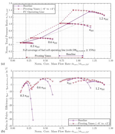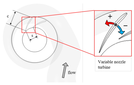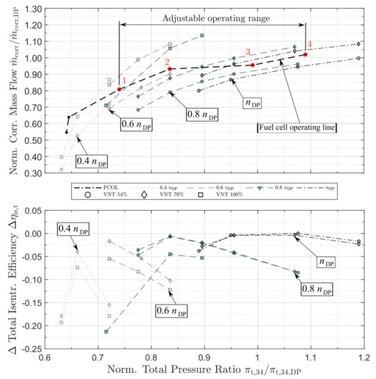 - Menze, M.; Schödel, M.; Seume, J.R. Numerical investigation of a radial turbine with variable nozzle geometry for fuel cell systems in automotive applications. In Proceedings of the 14th European Conference on Turbomachinery Fluid dynamics & Thermodynamics, ETC2021-748, Gdansk, Poland, 12–16 April 2021. [Google Scholar]