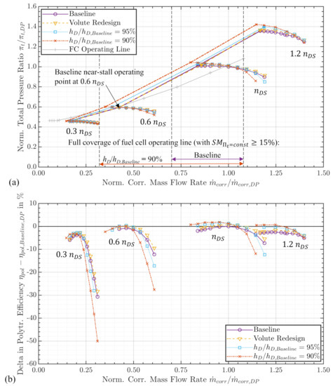 - Filsinger, D.; Kuwata, G.; Ikeya, N. Tailored Centrifugal Turbomachinery for Electric Fuel Cell Turbocharger. Int. J. Rotating Mach. 2021, 2021, 3972387. [Google Scholar] [CrossRef]