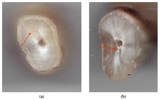 - Arashiro, F.N.; De-Deus, G.; Belladonna, F.G.; Cavalcante, D.M.; Coelho, M.S.; Silva, E.; Pereira, K.F.S.; da Silva, P.G.; Lopes, R.T.; Souza, E.M. Dentinal microcracks on freshly extracted teeth: The impact of the extraction technique. Int. Endod. J. 2020, 53, 440–446. [Google Scholar] [CrossRef] [PubMed]
